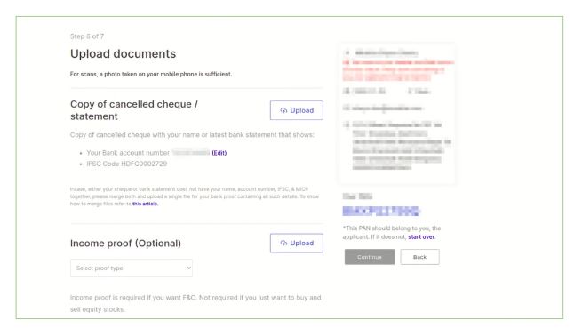 Step 8 : Upload All Documents ( Bank Proof , signature , PAN copy, Income Proof )